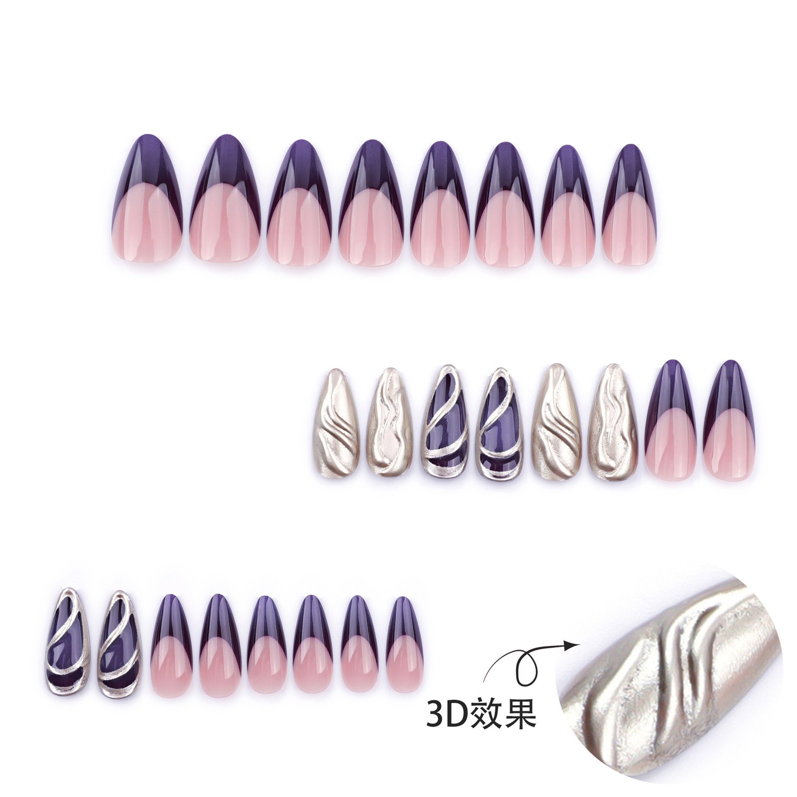 Art-Exhibition Ready Press-On Nails: 3D Metallic Designs with Pearlized Finish for Modern Elegance
